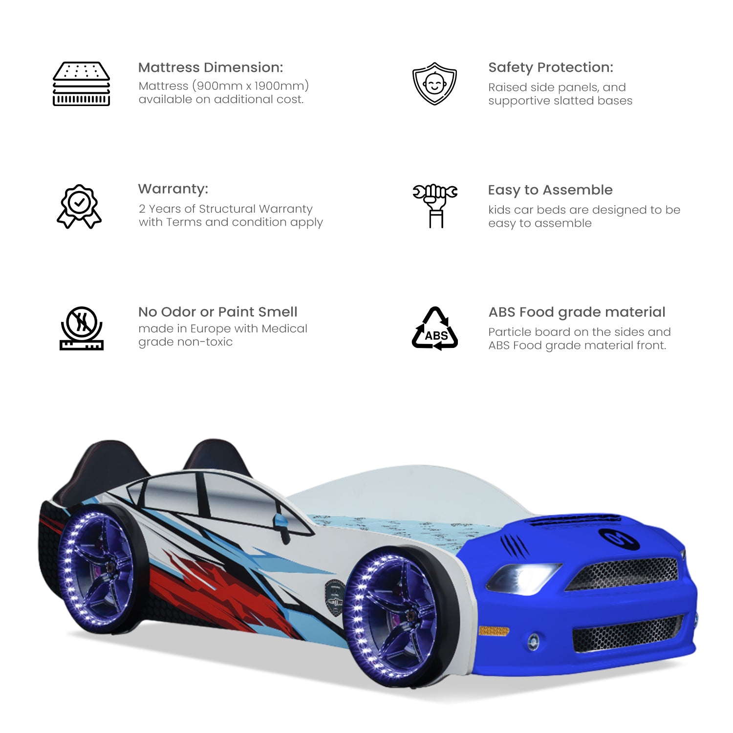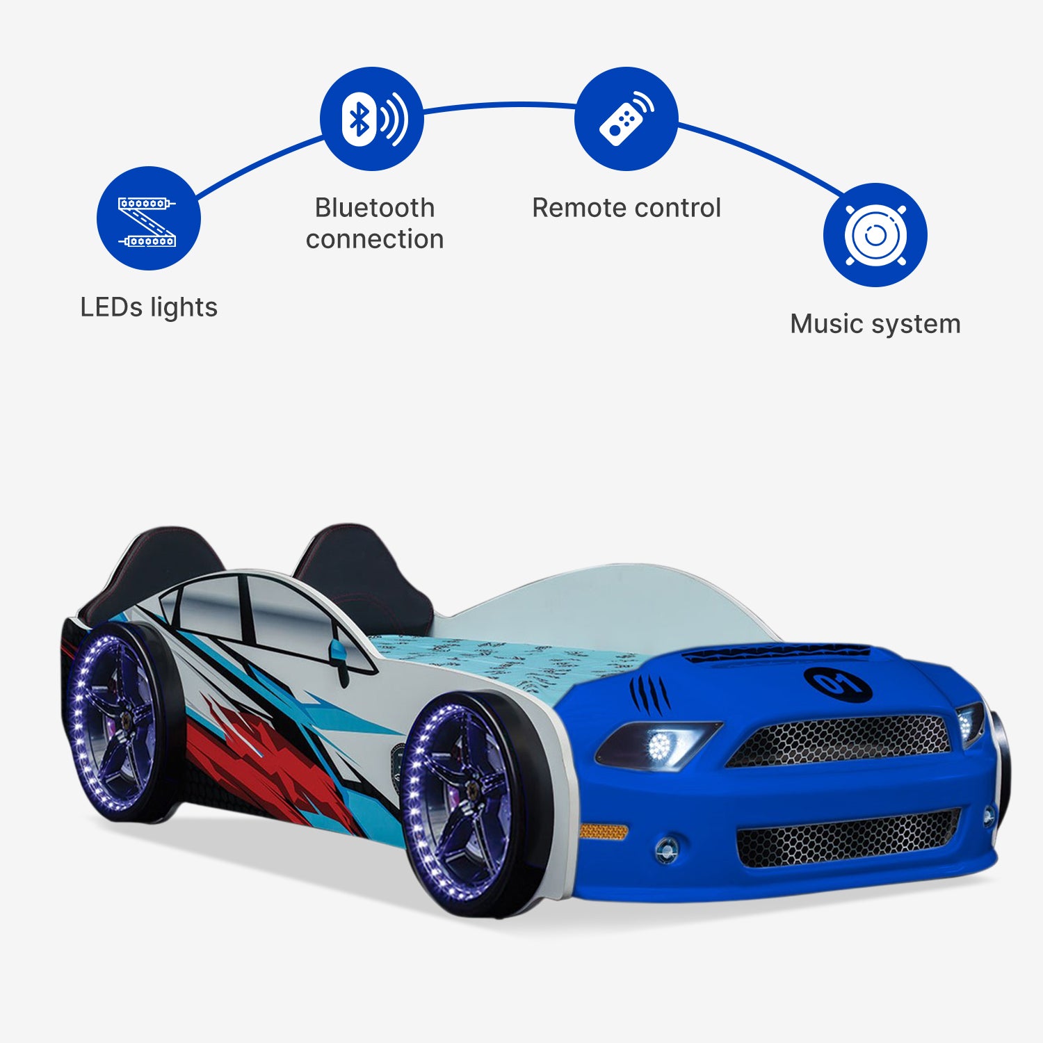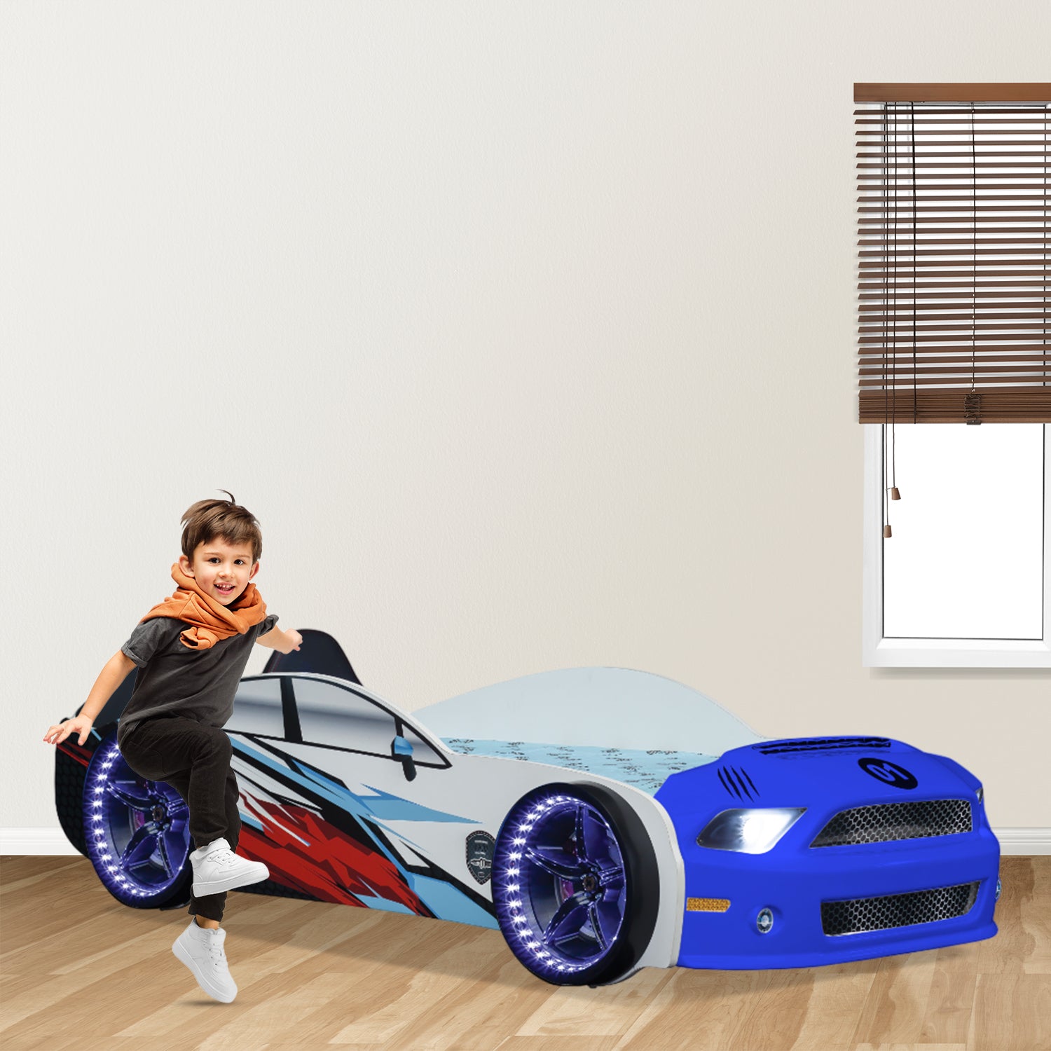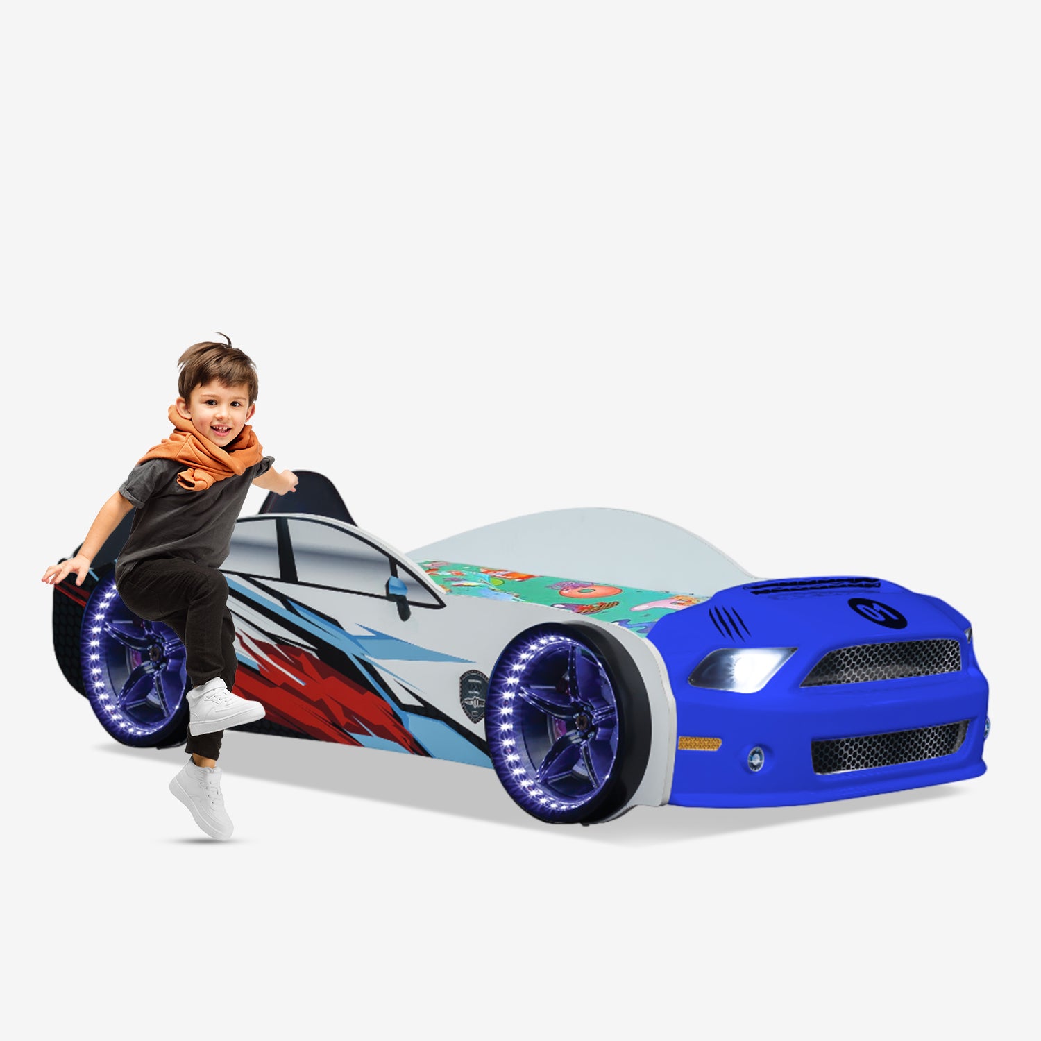 Not all racing car beds are made equal. Hurryguru India offers models equipped with interactive features that go beyond design, creating a realistic racing experience for children.