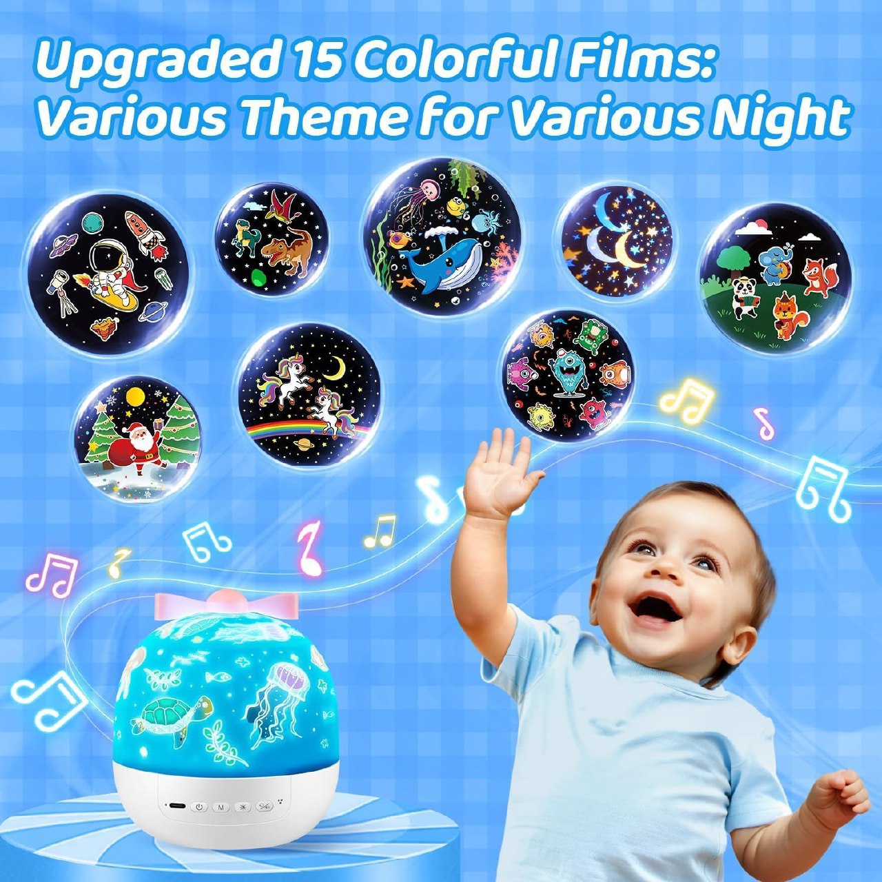 Mesmerizing Light Show: Projects a soft, calming display of stars, moons, or cute characters across the room, creating a magical atmosphere.