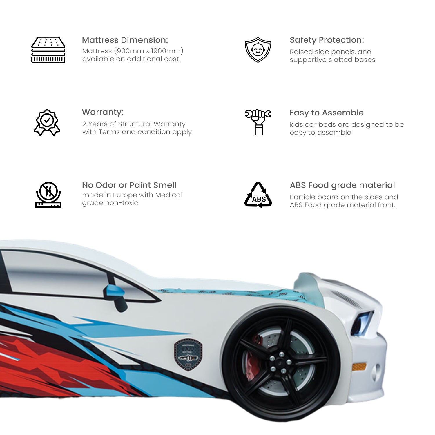 Hurryguru India understands that children’s furniture should be more than just functional—it should also be fun, engaging, and safe. The premium racing car beds come loaded with features that set them apart from regular kids’ furniture.