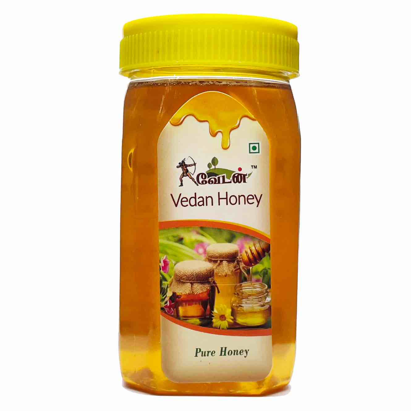 Honey is a highly viscous substance that is produced by honey bees; it is derived from the sugary secretions in plants. Honey bees store honey in honeycombs, and we can get it directly from them. Honey can be used in place of sugar in a wide range of foods. Additionally, it can be used to consume Siddha and Ayurveda herbal powders. Vedan honey is 100% natural, sourced directly from the hilly areas, and also certified by FSSAI.