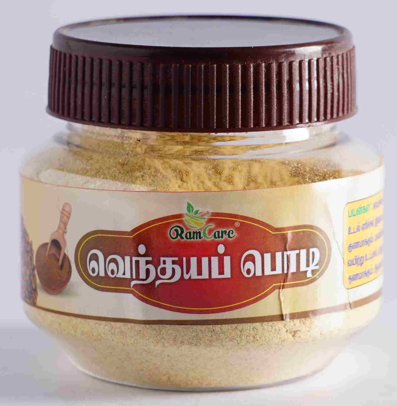 Fenugreek, vendhayam in Tamil and also called methi, is one of the notable spices; their dried leaves are used as a flavor to food; their seed is also used in batters, traditional dishes; it is rich in proteins, vitamins such as A and C, and also iron, magnesium, and also dietary fibers. It is also consumed for health issues. Ramcare Fenugreek Powder helps to reduce fever, cures constipation, liver disorders, helps to relieve menstrual pain, and also helps to reduce the risk of diabetes.