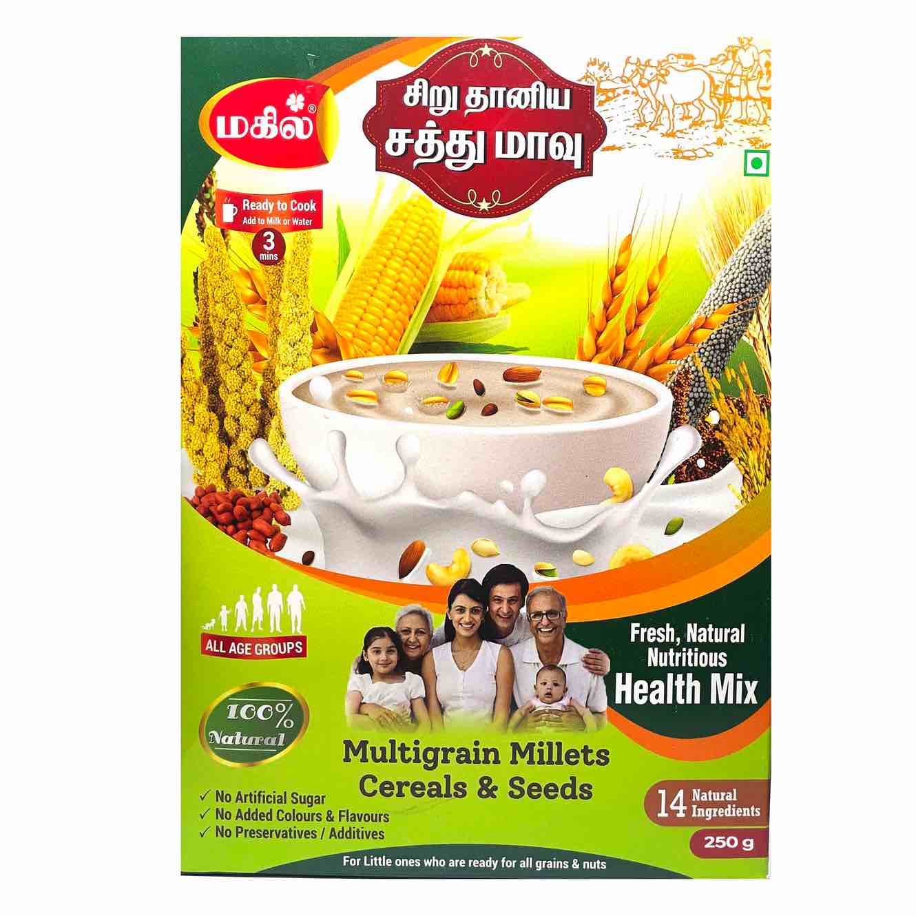 The Health Mix Powder contains millets, nuts, and whole grains. These powders are fully loaded with vitamins, minerals, proteins, carbohydrates, and also dietary fibers. This will be more healthy and also prevents from various health issues. Mahil health mix powder is made for all ages and has a high nutritional value.