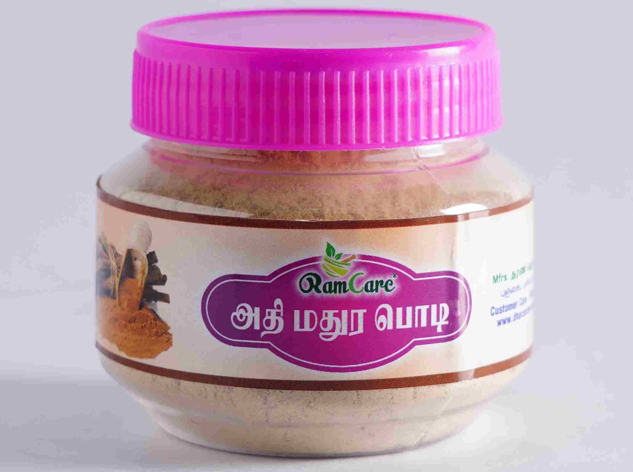 Licorice powder or Athimathuram powder possess numerous uses, it contains natural sweetener in it, Athimathuram root is mainly used as a medicine, the plant contains active compound that has antioxidants, ant-microbial and anti-inflammatory properties.